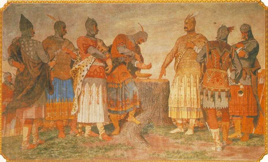 4. hogyha utódaik közül valaki hűtelen lenne a vezér személye iránt, a vétkesnek vérét ontsák, miként az ő vérük omlott abban az esküben, melyet Álmos vezérnek tettek;