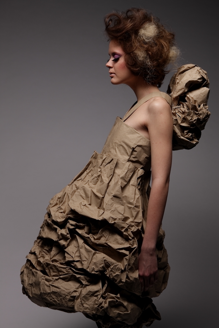 Ádám és Éva már az Édenkertben is a kerti zöld hulladékot használta a ruhatára frissítéséhez. Ez volt a fügefalevél. Manapság viszont szinte tobzódhatunk az anyagok kiválasztásánál. A világ hulladéktermelése szinte korlátlan mennyiségben és formában szállít anyagokat. Lehet, hogy rövidesen az elegancia elengedhetetlen kelléke lesz a pillepalack és az autógumi, a fémforgács és a szemétre dobott számítógép billentyű.